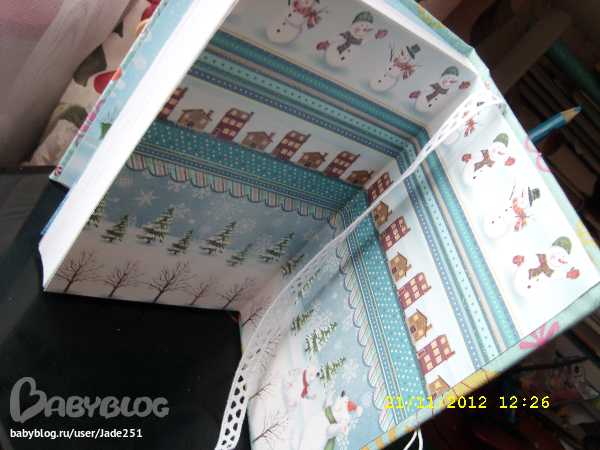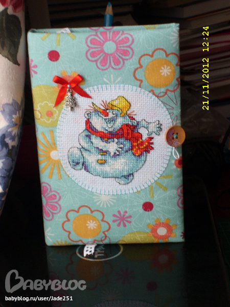СкрапбукингЕжедневник с готовым датированным блоком.Тканевая обложка на мягкой подложке,украшен ручной вышивкой,маленькой елочкой)) Застегивается на пуговку)