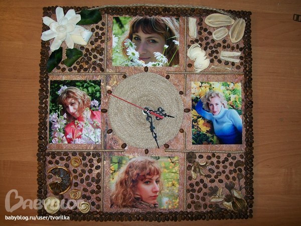 Получились вот такие настенныеароматные часики-коллаж. Думаю, такого подарка не будет ни у кого!