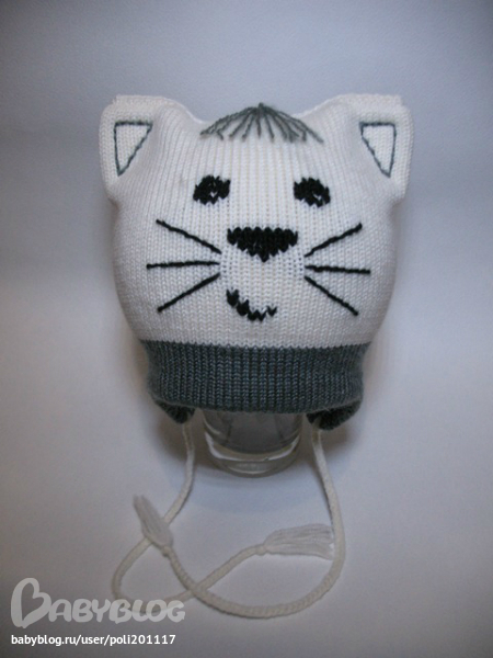 http://xobi.com.ua/4250-shapka-dlya-malysha-kot.html, там вроде просто надо связать два полотна.Про ушки ничего не написано(((.Раньше вязала и крючком и спицами,но давно уже не брала в руки(((Завтра посмотрю,какие ниточки у меня есть,может для пробы и не тот цвет возьму,моему Севе такая шапочка голубенькой пойдет,к глазам,такого цвета точно нет,но потренируюсь любым)))Спасибо за подсказку))