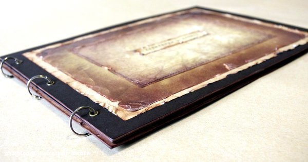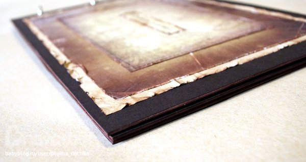 Ты не поверишь, но это бумага! :))) и там абсолютно ничего сложного. На обложке "кожанный" эффект получился из-за того, что распечатан фон на лазерном принтере, отчего есть приятная гладкая фактура и небольшой блеск. Но вживую и правда кажется, что это кожа.