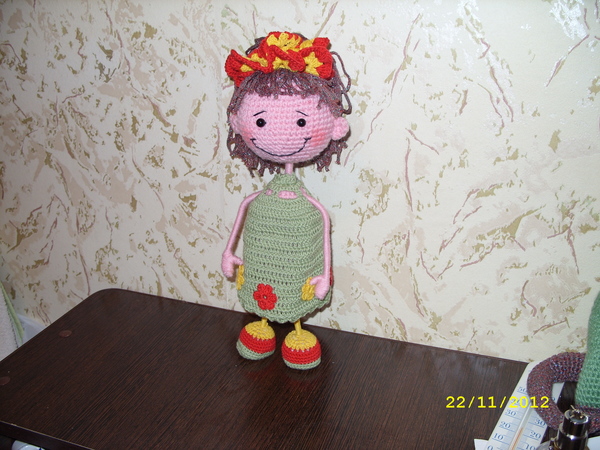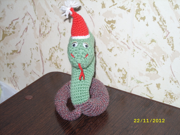 Девочка зачетная. А у змейки цветовая гамма несколько странная. Вообще лучше вязать игрушки из акрила и чтобы цвета были поярче.
