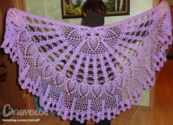 Вот здесь она ееще не довязана (нет ряда ананасов), зато хорошо передан цвет и видно размер.
