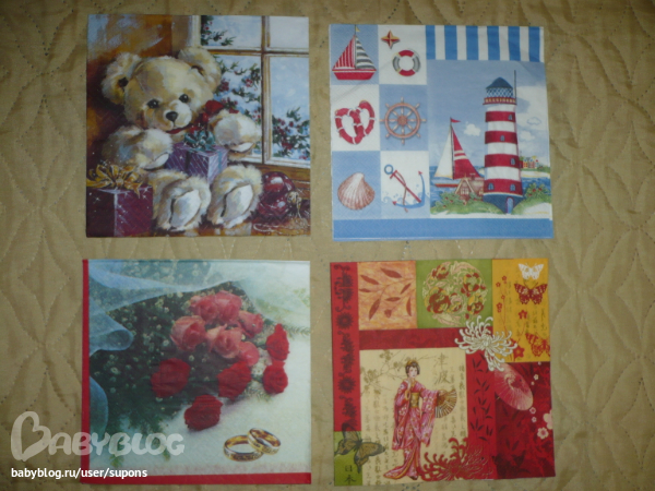 Я бы поменялась!!!Понравились с мишкой-3,с гейшой-2,с маяком-2,с орнаментом золотым на белом-2,бело-розовые цветы на красном-2