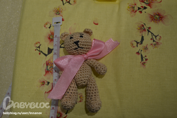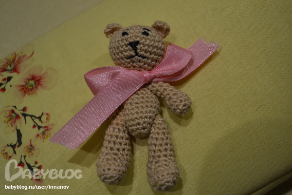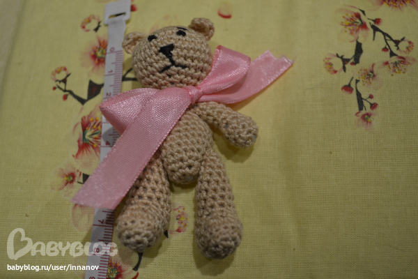 Мне кажется для шапки можно чуток меньше делать,и еще бантик ему потоньше завязывать :)