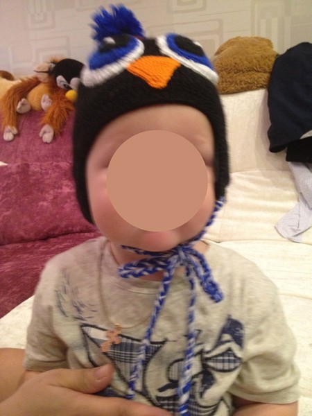 Я скидываю фотки Марине и она соглашается перевязать ее при условии,что я сама к ней ее привезу на другой конец Москвы. Я конечно обалдела,но что не сделаешь ради ребенка,а он так любит пингвинов! В итоге приехала я к ней,привезла нашу другую шапку для прототипа. И тут узнаю от Марины,что шапка по глубине должа быть по ее расчетам 16 см (впоследствии я узнала,что 17см) мы измеряем свзанную ею шапку-с внешней стороны она еле еле 15см,а тк внутри толтсый флис и внутри шапка еще меньше. Соответственно она или не измеряла ее перед тем как мне отдать или отдала,что типа и так сойдет. И еще лепетала,что у нее другой сантиметр. При этом она наш разговор все время уводила в сторону ее др заказов,что она вся нарасхват и намекала,что делает мне одолжение,что перевяжет. Я ей отдала полную стоймость 1700р. В итоге сижу жду нашу вторую шапку и только 12 ноября мне скидывает Марина фото второй шапки,я сразу замечаю,что этот дурацкий флис пришит вкрая шапки,а не с отступом как впервый раз. У меня сразу первый вопрос не торчит ли флис,на что мне Марина-"чудо мастерица" отвечает в грубой форме,что все отлично,а она не фотограф как смогла так и сфоткала. Тогда бы мне задуматься над ее словами "как смогла..." видимо это ее девиз по жизни! На этот раз она соизволила сама подъехать к моему метро (только к метро,хотя я к ней ездила прям на работу). Когда я цвидела вторую шапку и вывернула ее на изнанку,у не подклад был сшит вручную и были видны нитки,я спросила не порвется ли она.Марина -нет конечно. Я блин дура наверное,но я привыкла доверять людям,прощать их какие то ошибки,недочеты. И я забрала эту шапку и ушла домой. Померив дома не ребенке вы не поверите,конечно же жутко торчал флис,а тк он был в принт,то с одной стороны он торчал голубым светом,с другой бело-черный. Нитки внутри расползлись после 2 примерок, а самое главное уши и затылок торчали!!!! Маина не смогла свзать шапку по нашему прототипу!