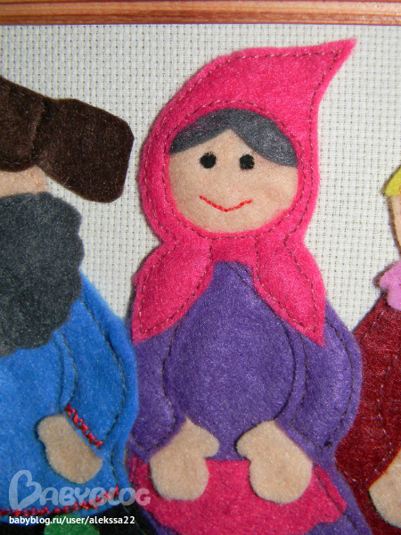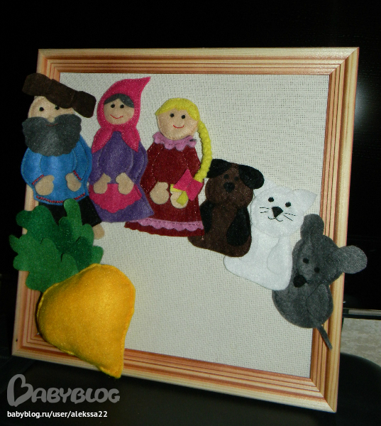 Задали в детском саду домашнее задание для родителей, сделать поделку на тему "сказка", да еще из природных материалов, к выставке.. В округе у нас ни шишек, ни желудей я не видела, пластилин не природный вроде ,поэтому найдя дома фетр и наткнувшись на пальчиковый театр Евгении, за что ей ОГРОМНОЕ спасибо!!! решила воспроизвести) Конечно до красивости оригинала далеко, но вроде не плохо вышло) Надеюсь в садике оценят мамины старания)