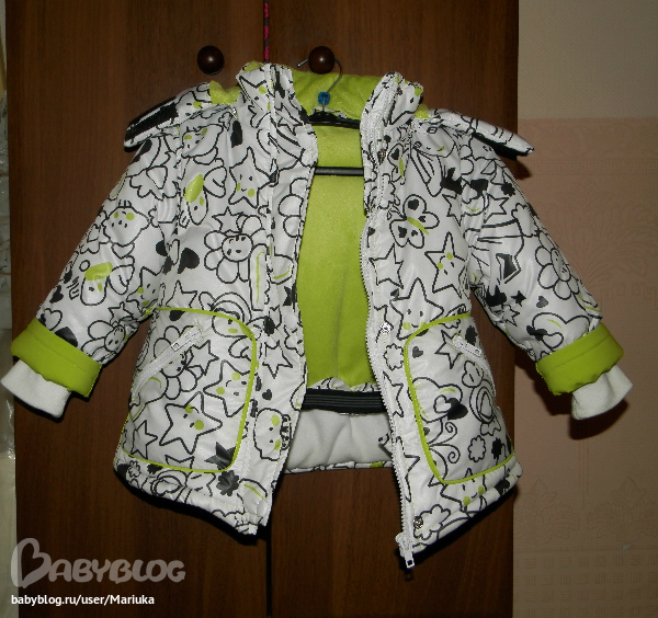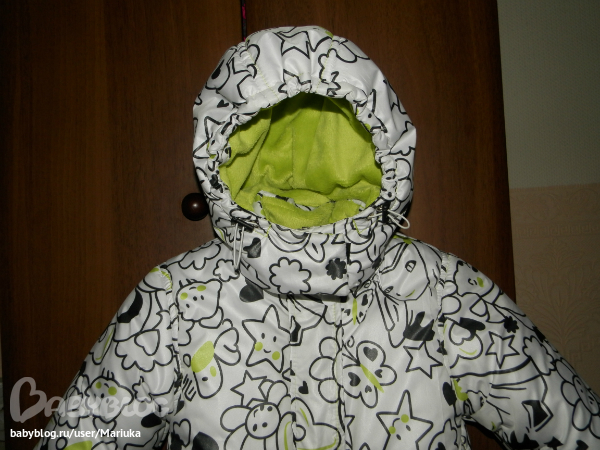 Куртка из плащевки Дюспы, утеплитель Альполюкс 300 (два слоя по 150), подклад флис везде, в рукава сверху обычная подкладочная ткань для скольжения, а на полочках и спинке еще мех "Вельбоа". В капюшоне один слой утеплителя и мех. Теплющий получился, на футболку пока носим! Из изменений выкройки: удлинила рукав, добавила внутрений манжет из рибаны, воротник сшила без припусков чтоб высота была поменьше, ветрозащитная планка внешняя на всю длину и внутренняя маленькая с уголком для молнии, чтоб не защимить при застегивании, увеличила глубину капюшона, и добавила внутреннюю " ветрозащитную юбочку", она с резинкой с латексными вставками, не скользит вообще, и ничего не поддувает))) Уф-ф-ф. вроде все написала. А, светоотражающая лента закончилась и не могли купить, поэтому сшилось все без нее, остатки пустила на низ п/комбинезона.