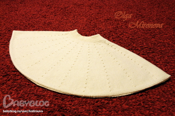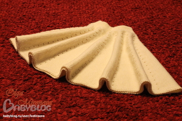 Так как юбка довольно широкая, то вязала поперек,равномерно увеличивая и уменьшая количество петель в укороченных рядах. По верхнему краю связана двойная резинка - петли закрыты иглой. По нижнему краю сделана обвязка крючком.