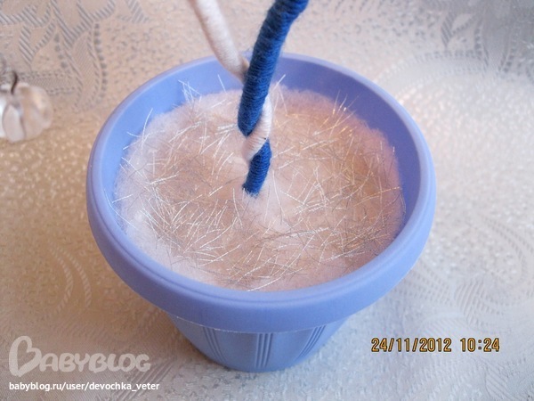 Конец ствола (проволоку) раздвигаю в стороны и в горшочек с алебастром сажу, оставляю до полного застывания, потом декорирую... Как-то так...