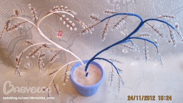 Бисер. Бисероплетение. Украшения из бисера.Дерево выполнено из бисера и проволоки. Посажено в горшочек с алебастром.
