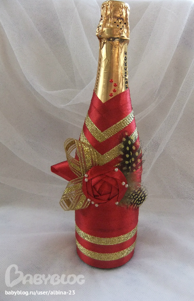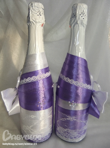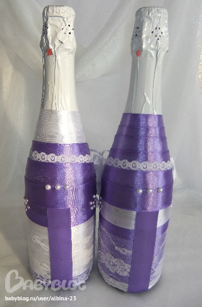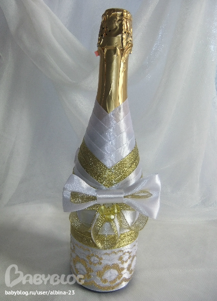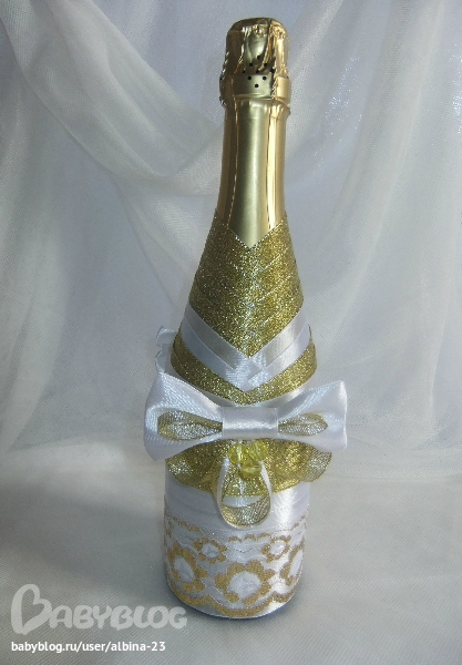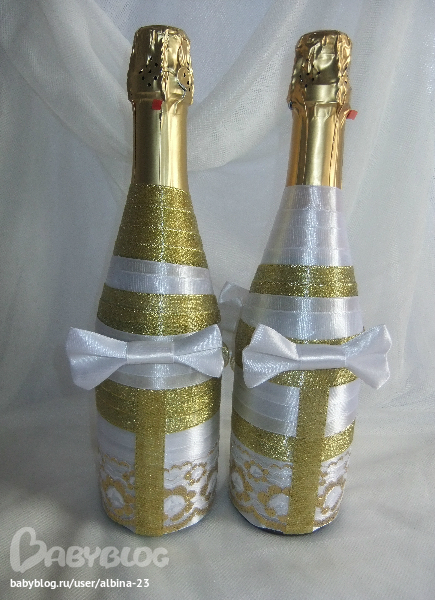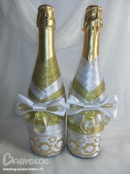Вернее,она заказала 2 бутылки в подарок молодым,а я сделала 2 пары на выбор.Она взяла бело-золотые,которые ниже.