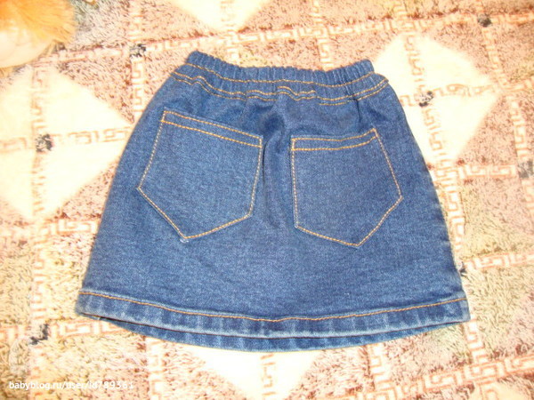а эту юбочку сшила , пока доча спала. Укорачивала деду джинсы, остались обрезки двух штанин, из одной получилась юбка, наша попа замечательно проходит, из другой пояс и карманы. Безотходное производство.