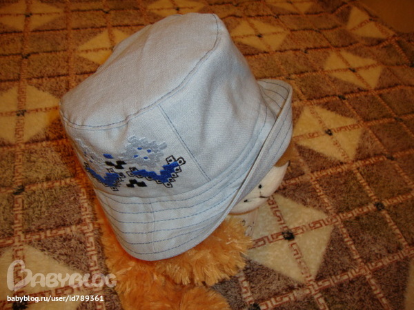 панамка из бабушкиного льняного костюма, вышивка была на костюме. Панамки сшились две, одну подарили другу.