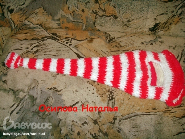 извините что не сразу отвечаю. Вяжется с хвостика.прибавками в рядках довожу до нужного размера вяжем шапочку,потом прорез для лица рядами туда обратно. Потом все объединяем и вяжем по кругу с прибавками на хомутик воротник. Надеюсь понятно написала)))