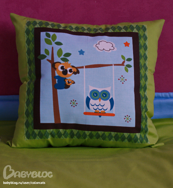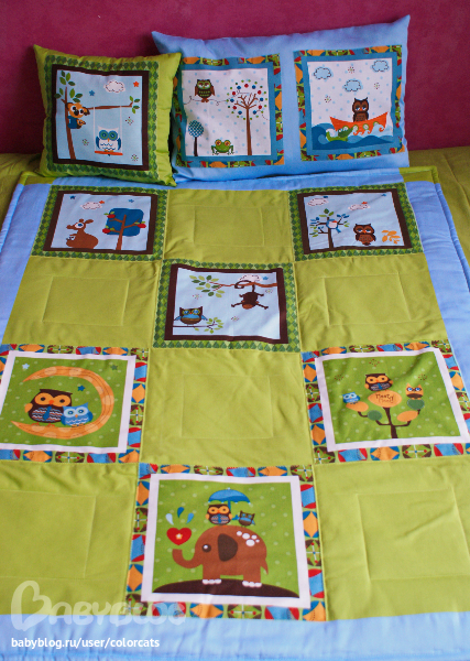 Всем добрый день))) Вот такой веселенький комплектик в кроватку получился у меня для нашей бб-шки Галины http://www.babyblog.ru/user/lenta/GalkaZ , точнее для ее малыша Костика))))