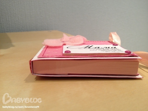 СкрапбукингВ воскресенье вечером совершенно случайно из новостей узнала, что оказывается праздник был-День Матери... Захотелось сделать для моей любимой мамочки небольшой сувенирчик, чтобы еще раз сказать, что я ее люблю... Уложила вечером ребенка и пошла скрапить)) Вот что в итоге получилось. Открыточка и блокнотик для стикеров: