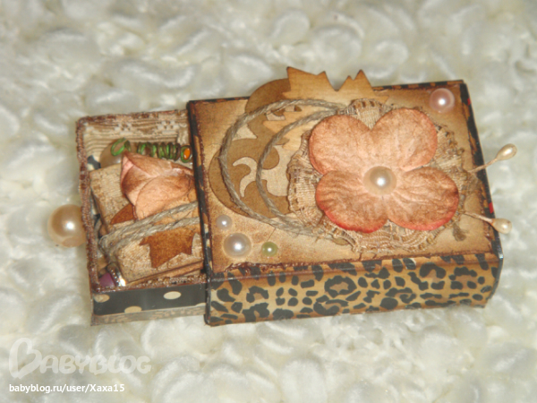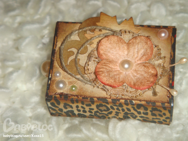 Кать, а коробочка эта по игре-обмену делалась:) Там условия такие: коробочек размером со спичечный скрапишь-украшаешь и внутрь кладёшь как можно больше всякой скраповской мелочёвки, не повторяясь и в одном стиле:)