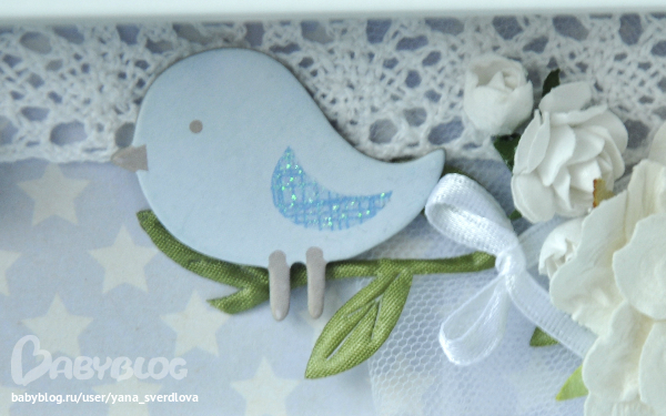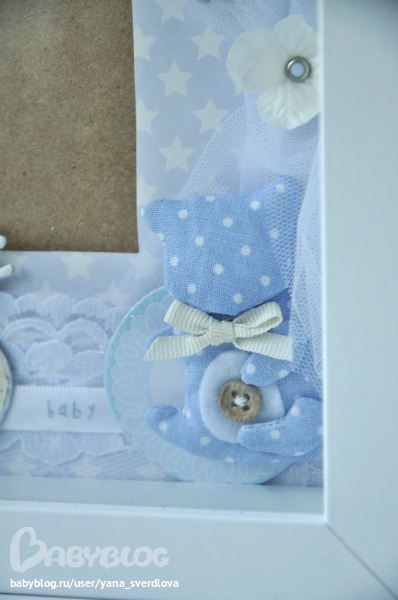 Видно,что с любовью сделана рамочка,такая нежненькая,мальчуковая.Я хоть в скрапе ни бум-бум,но мне оооочень понравилась ваша работа.Вы молодец,Яна