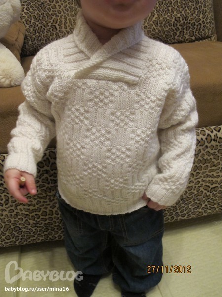 Какая рукодельница! Какой стильный белый свитерок! Очень , по-белому, завидую тем, у кого руки рас тут откуда надо в этом плане. У нас вяжет только моя бабушка. У Темки есть 2 пары носков шерстяных.