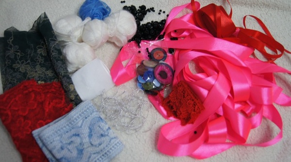 Мой хомяк счастлив!!! Пуговки, бусины, нитки, ленты, отрезочки!!! Ух...Хочу заметить что всё было отлично упаковано, тут просто Марк с ними поиграл))) а скручивать назад мне было лень)