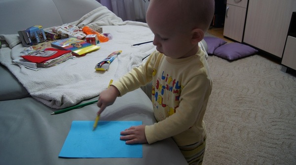 Были еще карандаши, которые он сразу взял и принялся создавать "шедевры" на Лениной же записке)
