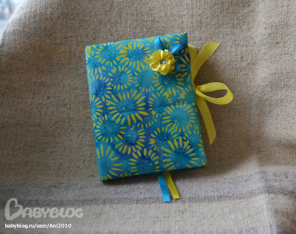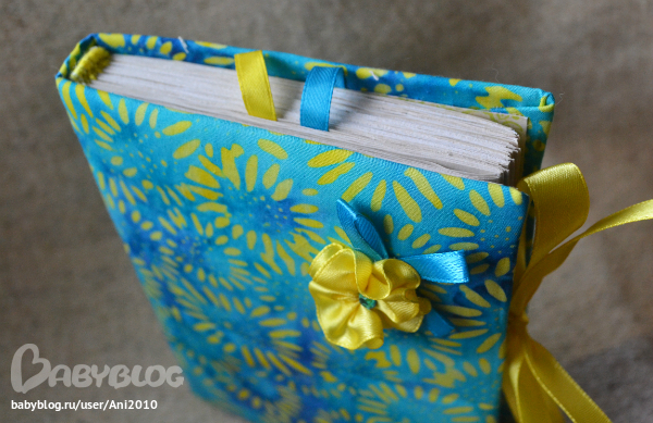 Обложка из натурального хлопка,украшения, завязывается на ленты, две закладки.