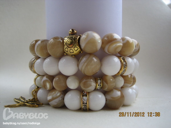 Браслет из белого агата, перламутра белого и коричневого.1300р