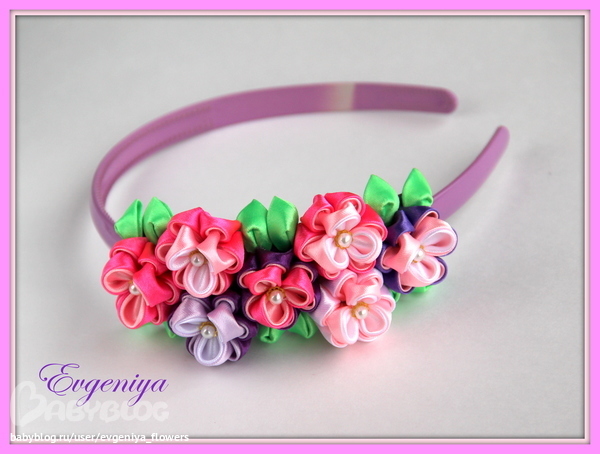 Шикарный ободок!!!!!!!!!!!как тебе хватает терпения на них....столько малюсеньких цветов! я только раз пробовала из таких цветочков делать...мне хватило надолго))))))))00