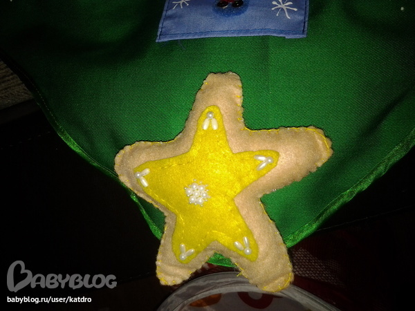 Вешается елочка за веревочку, которая крепится к пришитой сзади пуговичке :-) кармашки вместительные, конфетка или маленькая коробочка влезет, насчет мандаринки не уверена, надо попробовать :-)