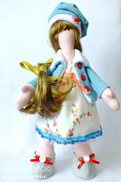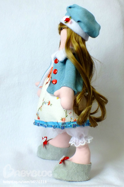 Шила эту куколку на заказ для девушки, которая до сих пор верит в Деда Мороза. Впервые работала с искусственными волосами и натуральной кожей (туфельки сшиты из замши). Рост девочки 38 см, сегодня уехала в далекий Архангельск. В посылку вложила еще письмо от Деда Мороза ))