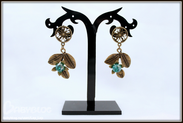 11. Серьги "Распустившийся цветок" Бронзовая металлофурнитура, стекло. Размер 4,5см