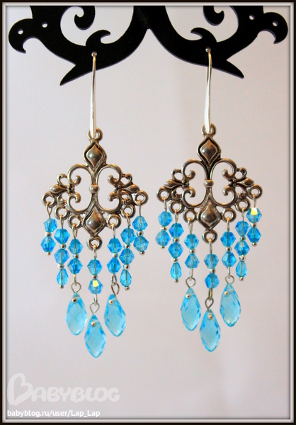 8. Серьги "Голубая лагуна" Длина со швензой 8см, металлофурнитура, стекло, посеребренные швензы