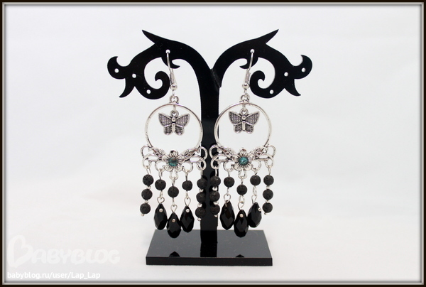 9. Серьги "Роковая красавица" Металлофурнитура, вулканическая лава, стекло, размер со швензой 7см