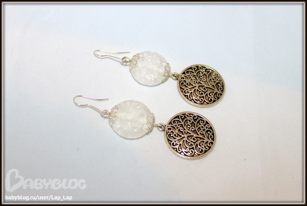 3. Серьги " Льдинки" Длина со швензой 7см, металлофурнитура, "ледяной" кварц