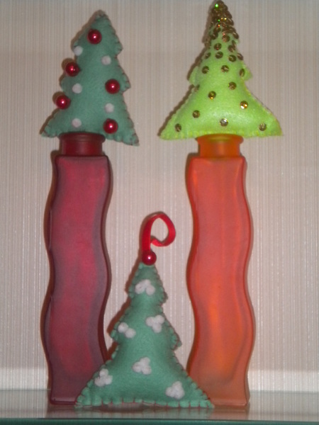 Новый год очень вдохновляет.Я просто напокупала разных пуговичек, ленточек, бусинок и, когда садилась делать очередную елочку, не знала сама, какая у меня получится. Там не все на фотках. Дочь захватила несколько и не хотела отдавать))