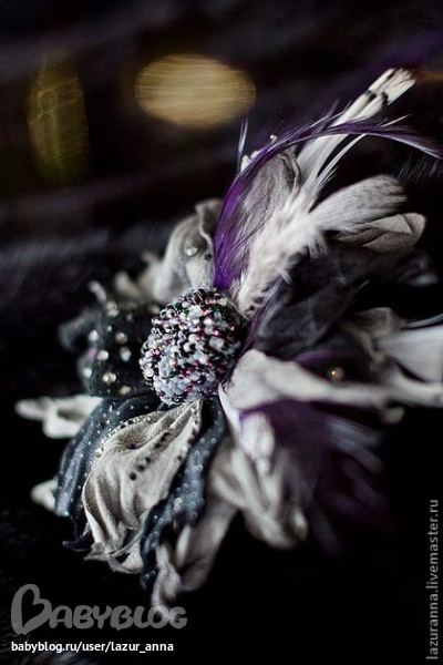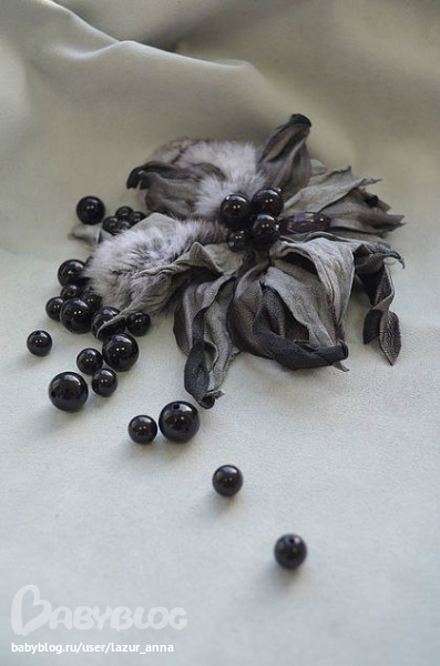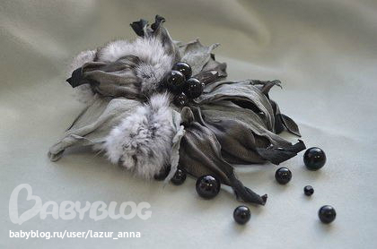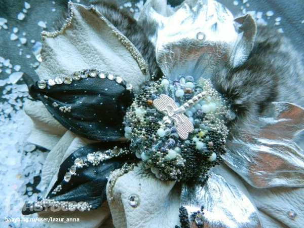 Брошь "Рассвет на берегу океана" (вариация), с мехом шиншиллы