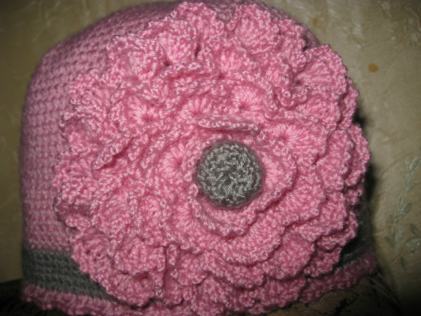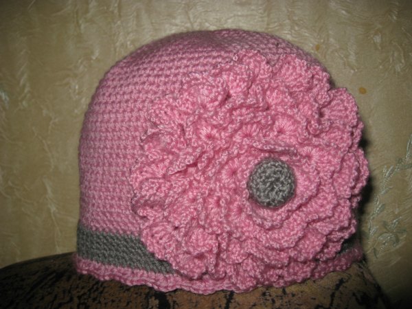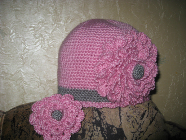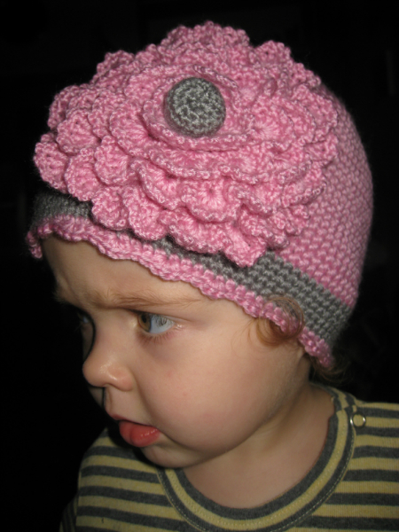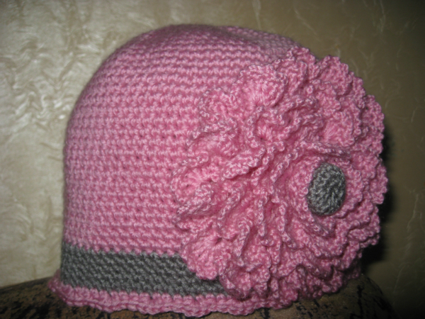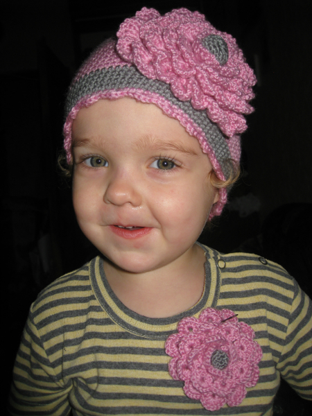 Заказали у меня шапочку...нитки выбрала сама заказчица, сочетание тоже...им она нужна была под серую шубку...девочке 5 лет, но она маленькая...