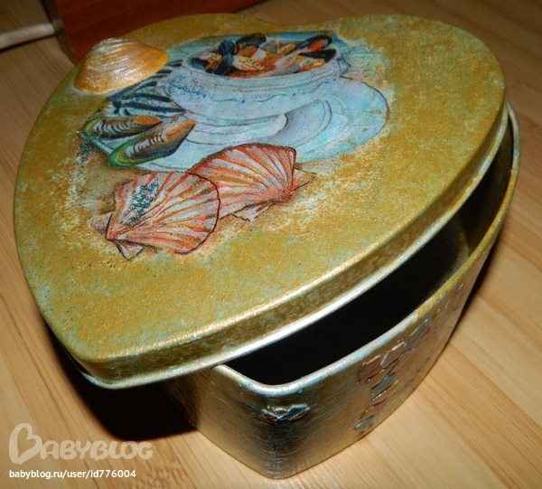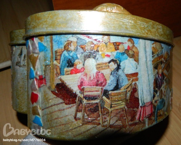 AGM в Рукоделие 13 лет Шкатулка Декупаж За основу была взята жестяная коробка из под чая, прогрунтована. В качестве мотива - использовала салфетки. Двухшаговый кракелюр Посмотрите еще 20 записей на эту тему Отменить Ответить Нюта симпатичная коробочка!!! здорово! У меня возник банальный вопрос по использованию. Если крышку открывать и закрывать - рисунок в этом месте не облезет? 03.12.2012 Ответить AGM Добрый день. Пока не облез, пользу примерно несколько месяцев. Крышка не очень плотно закрывается, видимо это спасает. 25.02.2013 Ответить Нюта спасибо за ответ! 25.02.2013 Ответить Тарелочка для сына Наборчик для кухни Чаты Беременных Выберите чат: Январята-2026 Февралята-2026 Мартята-2026 Апрелята-2026 Майчата-2026 Июнята-2026 Июлята-2026 Августята-2026