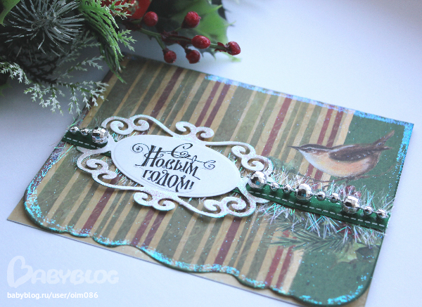 края и вырубка с блёстками,фотиком не получается передать как она у меня блестит))))))))))))блёстки просые,белые,но зависит от места,где они...по краям отражают зелёным от бумаги,а на вырубке розоватым)))))