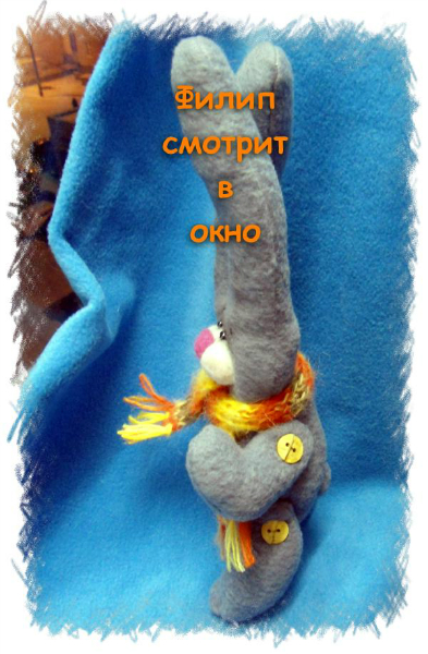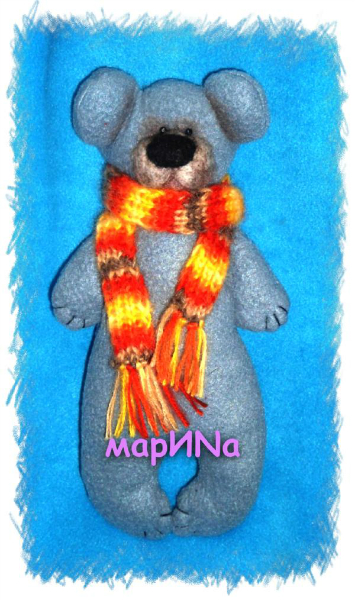 мягонький, тепленький, приятный на ощупь. он создан с любовью, из мягкого флиса, мордочка сваляна из шерсти, ручки и ножки на креплениях позволяющих двигать ими.