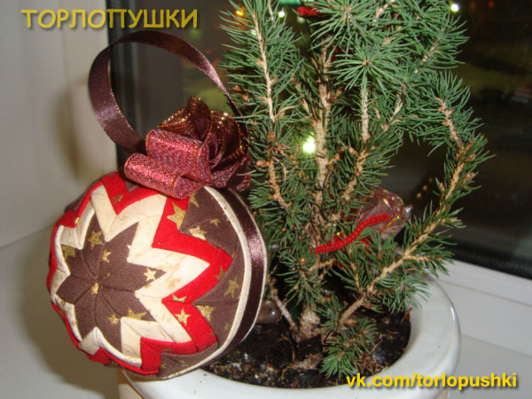 Спасибо. В пенополистероле булавочки очень крепко держаться, сами не распадуться это точно. Я когда криво приделаю кусочек, потом ногтем долго цепляю булавочки, чтобы вытащить и переделать. А в готовом шарике никаких булавочек не должно быть видно и зацепить не за что. Совсем маленьким деткам такие шарики играть давать нельзя, как и обычные елочные украшения, чтобы не откусили, не отгрызли ничего, вешать повыше. У меня и падал шарик из рук несколько раз, ничего ему не будет, мягкая посадка.