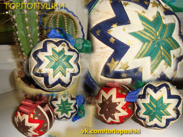 Это первые мои шарики в стиле "артишок". Решила в этом году попробовать, очень увлекательное занятие и нервы успокаивает не хуже вязания, сидишь себе булавочки вкалываешь. Эти уже на подарок лежат, а в следующем году обязательно себе целый набор таких елочных игрушек сделаю, они такие милые.