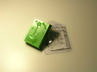 У меня такие формочки... Я вначале пыталась змйку разукрасить... Но как-то все не то... ТОгда я залила змейку белым цветом, а основу зелленым, когда мыло высохло - прокрасила надпись серебряным перламутром кисточкой и слегка прощлась им же по змейке - вышло очень симпотично и надпись читается)))