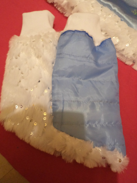 Крепсатин,таффета,мех с пайетками,изософт 60,термоснежинки,пришивные кнопки.