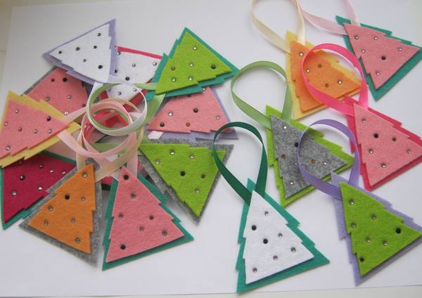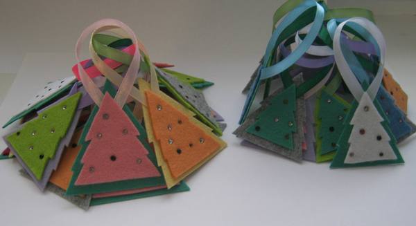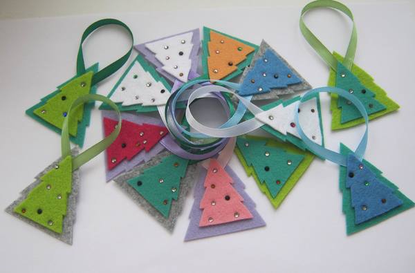 Готовлюсь к предновогодней ярмарке, в основном, у нас с подругой будет бижутерия , но этими ёлочками я решила немного разнообразить ассортимент))) Ничего не шила, всё клеила, использовала корейский жесткий и испанский полушерстяной фетр,который еще весной заказывала у Валерии.