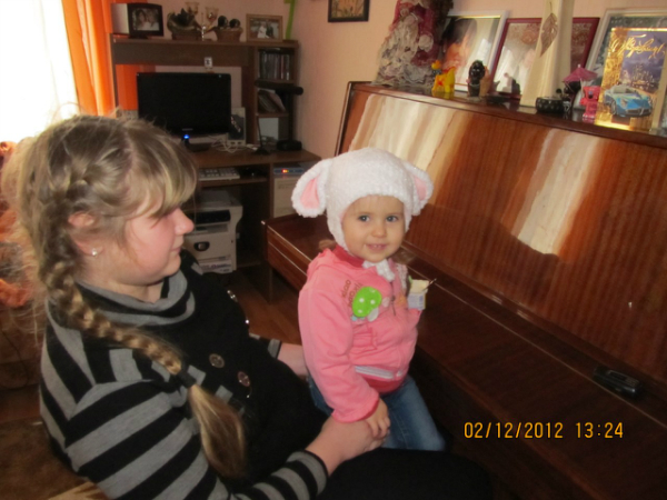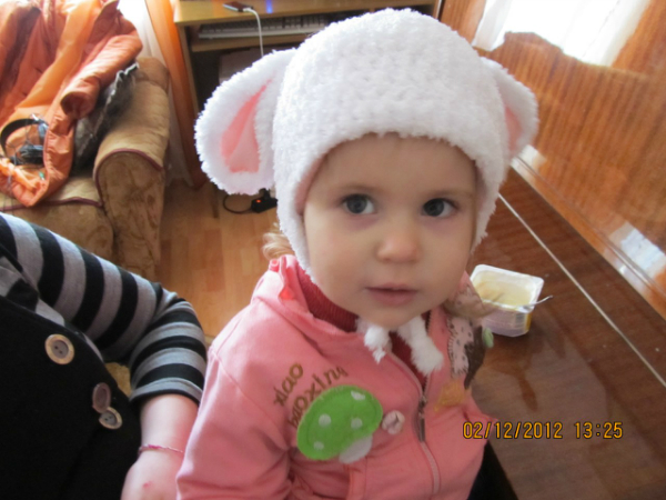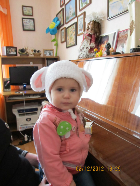Сегодня подружка прислала фото своей крошки в моей шапуле)))Мне так нетерпелось посмотреть,что я не дождалась прогулки,а попросила сфоткать так,дома)))