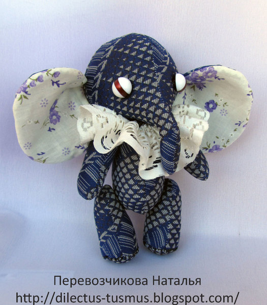 Игрушечный мир - животныеБаловалась я как-то с одной общедоступной Екатерины Беспаловой - ну очень хотелось попробовать!.. Но абсолютного сходства совсем не хотелось. Поэтому я решила сшить слоника в лоскутной технике и старый, не побоюсь этого слова - винтажный-)), галстук (наследие Советского Союза) для этого как раз и подошел. Кружеву на воротничке, кстати, тоже уже лет 30... Вот, как-то так... Родился Лука.