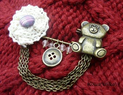 Брошь-булавка с милым мишкой может стать украшением для девочки любого возраста!