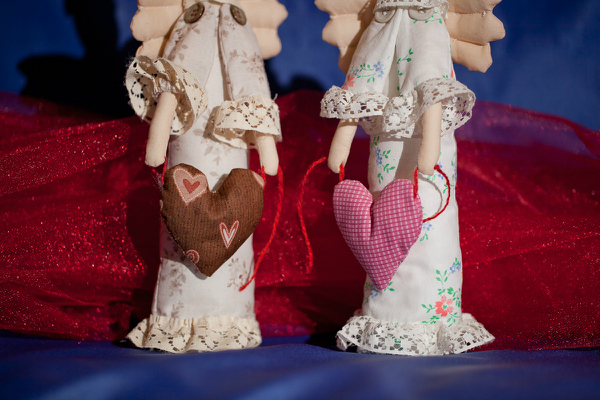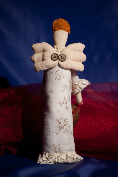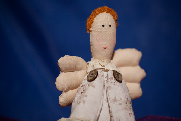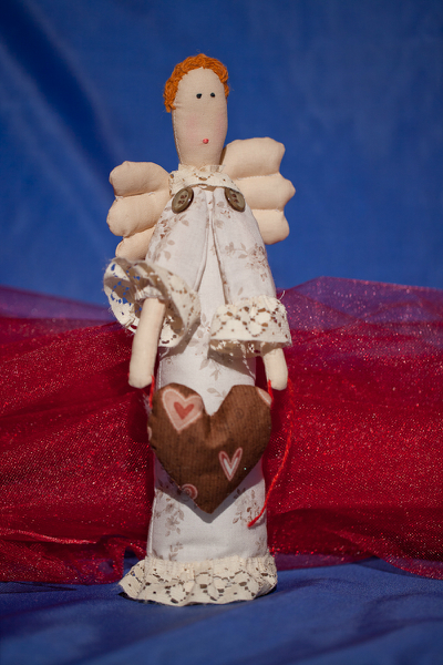 Кукла выполена из 100% хлопка, украшена винтажным кружевом. В руках Ангел держит сердце.