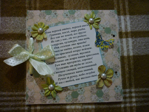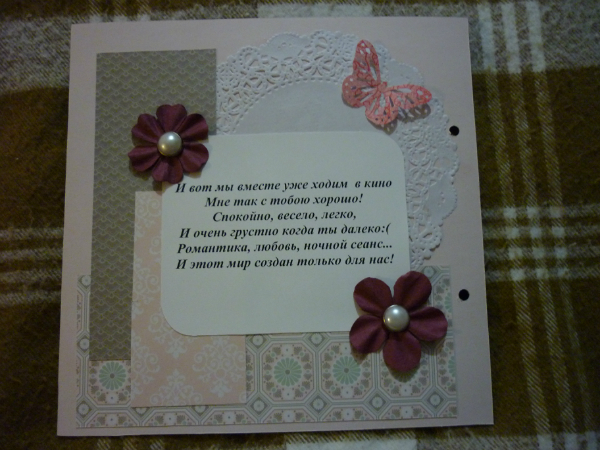 До того как увидел мои работы он понятия не имел, что такое скрапбукинг))))))))))))))))))а когда сказал что не может придумать как оригинально сделать своей любимой предложение, то я предложила вот этот вариант)))))